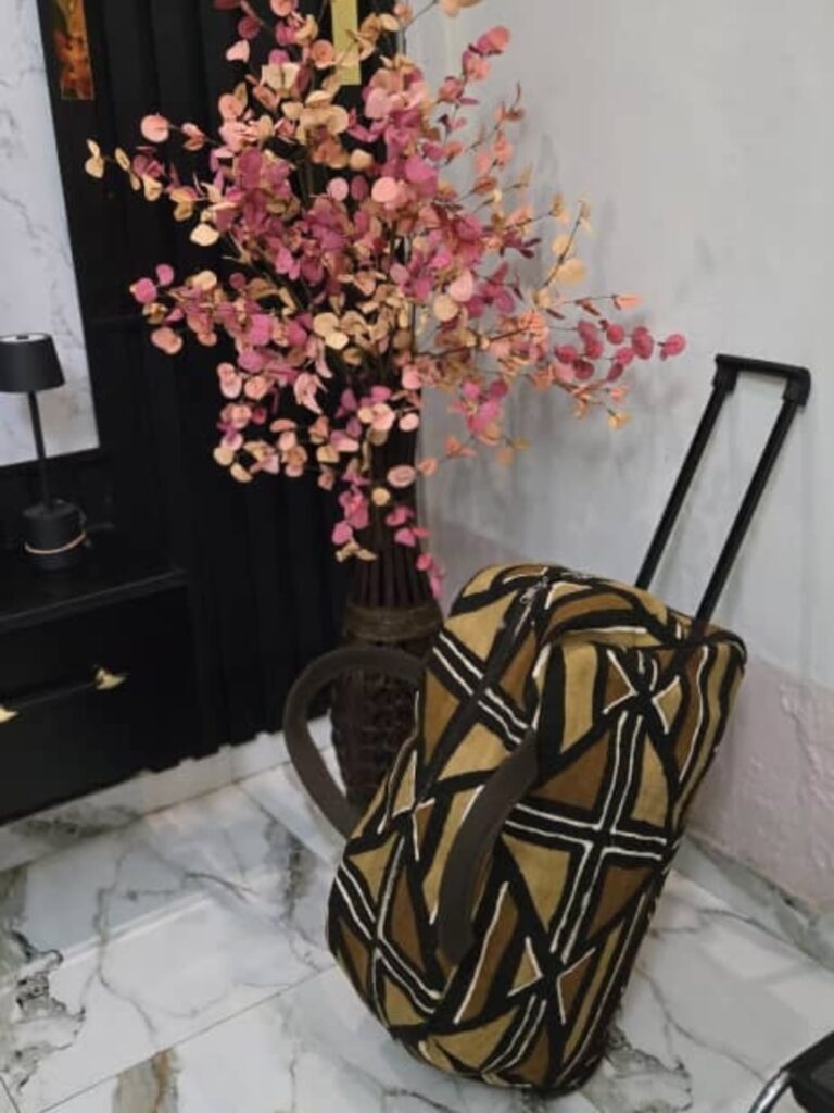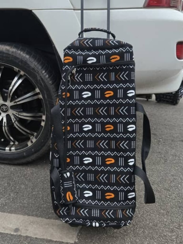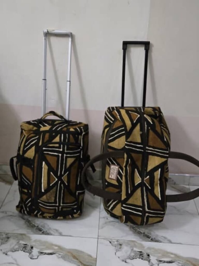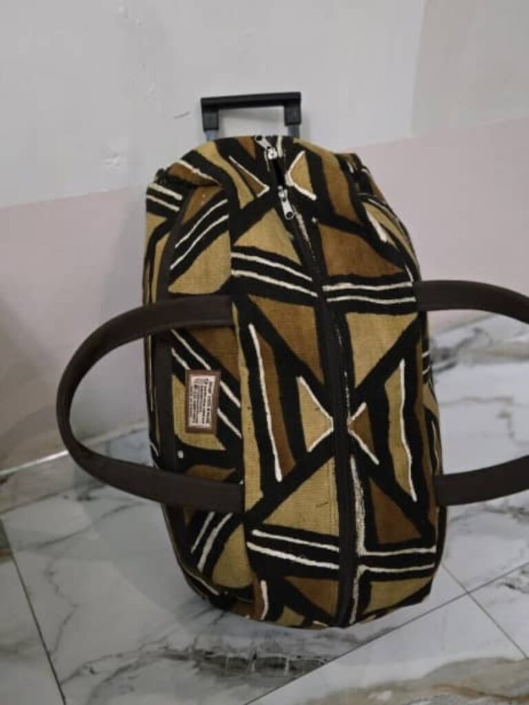 Going somewhere this fall? Take the culture with you while carrying one of Kwame’s one-of-a-kind designs. Choose from a shoulder-carry duffel bag, traveling case with wheels, or a customized handbag for your carryon items. We have you covered.